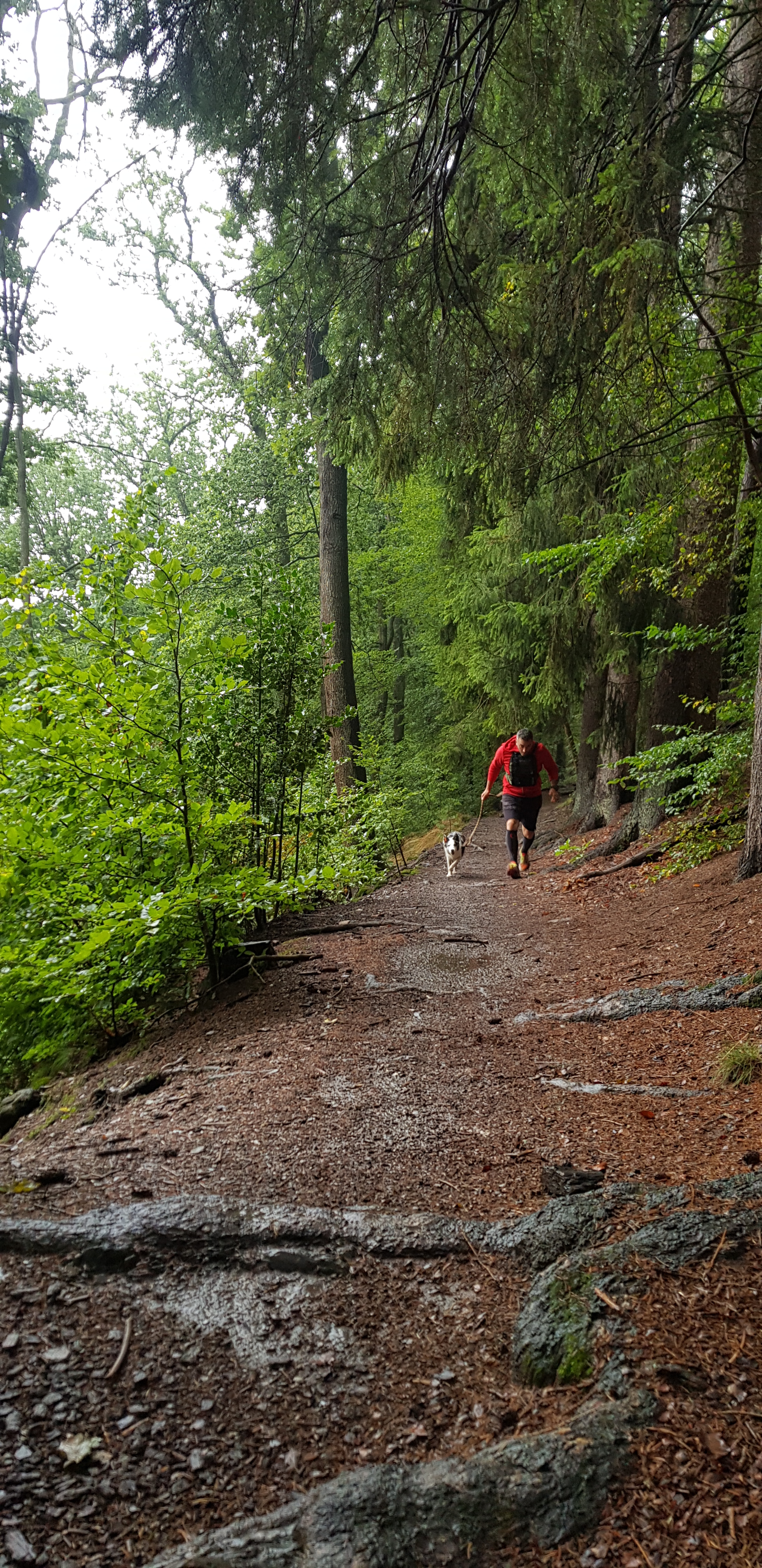 As part of my routine also started hiking around my house and I made a very nice picture of my husband and our dog “Luna”. We went for a 1 hour hike, using a 12k vest. It was hard but when you remove the vest you so good and your chest feels open. You are indeed lighter and therefore good.